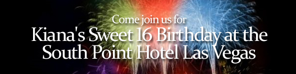 Join Kiana's Sweet 16 Birthday Party "LIVE" from the South Point Hotel Las Vegas Saturday, June 11, 2011 from 7PM to 11PM. (Up to 20 connections allowed at one time.) Click here and let us know you stopped by and to send Kiana a birthday greeting.